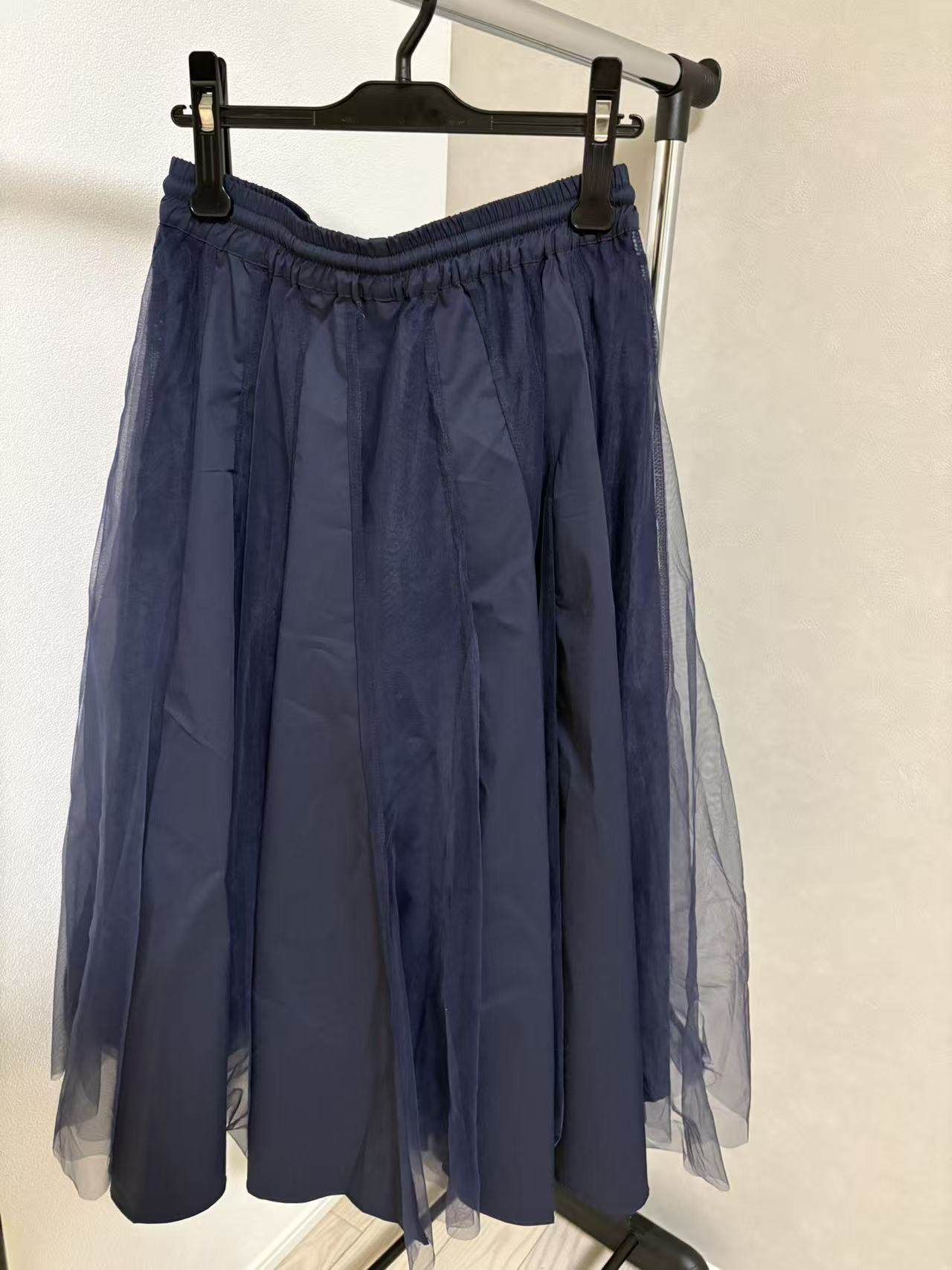ふんわりと広がるチュール素材が、軽やかで女性らしい印象を演出します。
