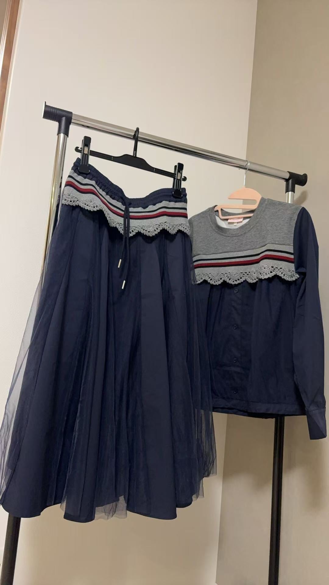 レース×チュール切替 イージーフレアスカート